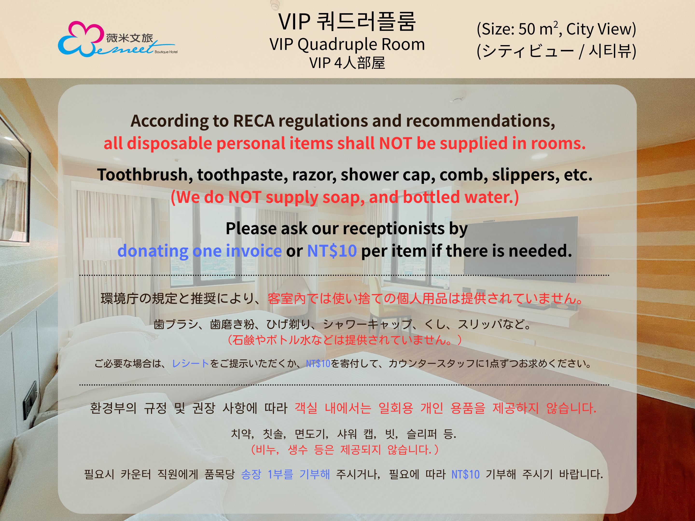 加人費用:每人 NT$600 (春節期間 NT$1,000),含早餐、浴巾、毛巾、枕頭。