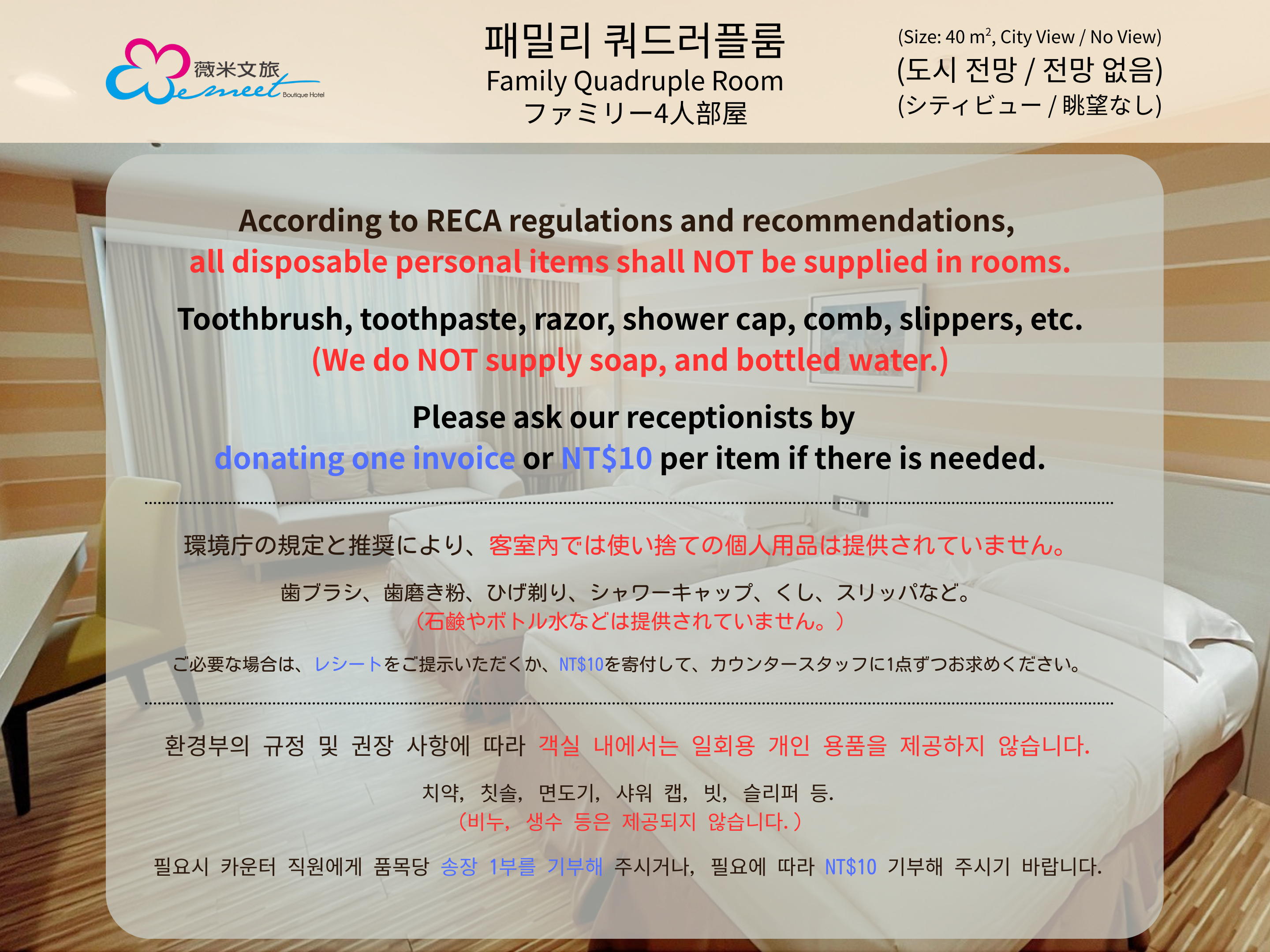 加人費用:每人 NT$600 (春節期間 NT$1,000),含早餐、浴巾、毛巾、枕頭。