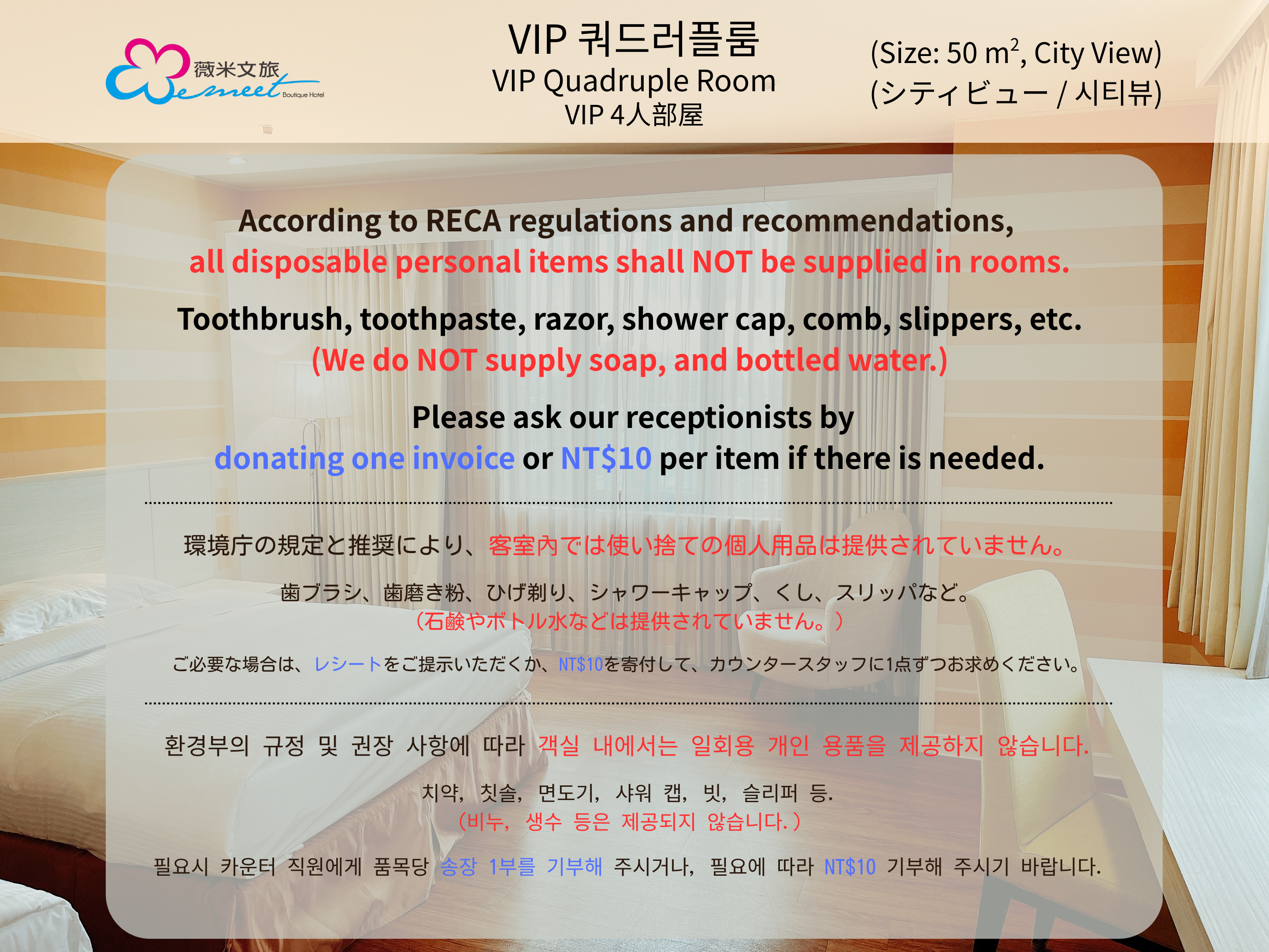 加人費用:每人 NT$600 (春節期間 NT$1,000),含早餐、浴巾、毛巾、枕頭。